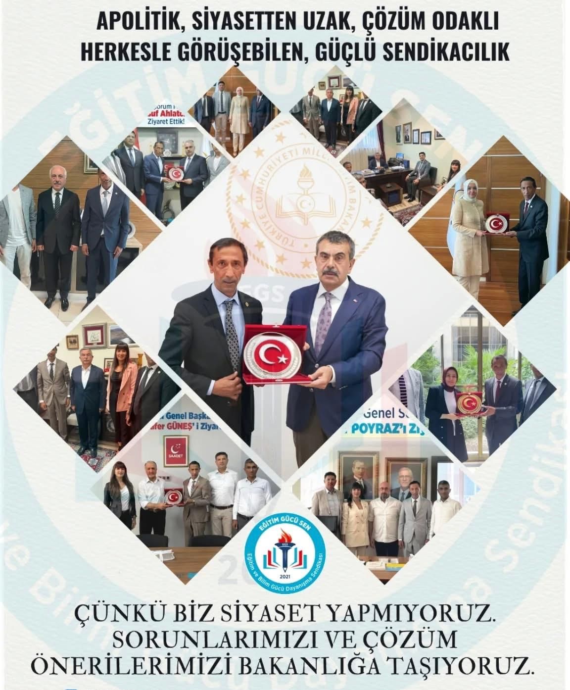 Biz, sahadan aldığımız gerçek bilgilerle bakanlığa sorun taşıyan, çözüm önerisi sunan; eğitim çalışanlarının sesini makam odalarına ulaştıran bir sendikayız.